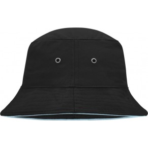 Ženski ribiški klobuk, 100% bombaž, kovinsko obročki, oblazinjen trak iz satena, rob klobučka v kontrastni barvi