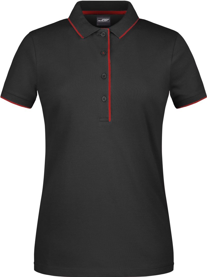 Ženska polo majica s kratkimi rokavi, 240 g/m2, 100% česan bombaž, 4 gumbi, pleten ovratnik, obrobe na ovratniku in rokavih v kontrastnih barvah