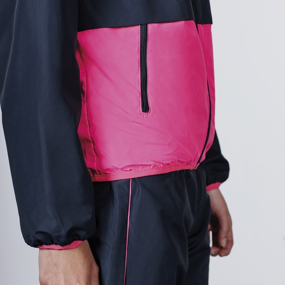 Ženska trenirka ( dolge hlače + jakna), 100% premazan poliester , 100g/m2, elastičen pas, stranski žepi, zadrga, elastika na hlačnicah